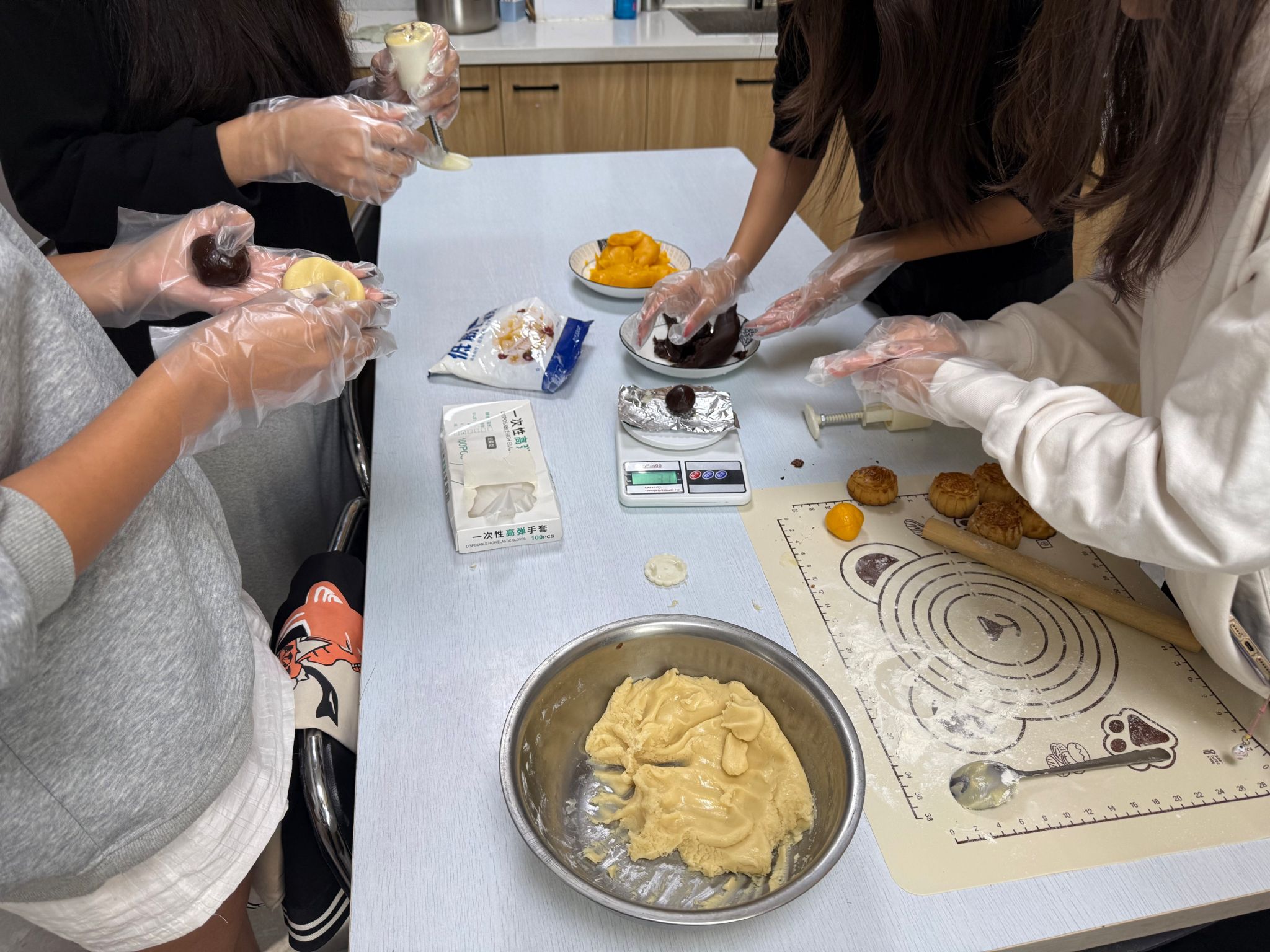 随着月饼在烤箱中缓缓烘焙,当烤箱的门打开的那一刻,一股温暖而诱人的香气立刻弥漫开来,那是月饼烤熟后特有的气息,这方寸烹饪空间内,不仅萦绕着诱人的食香,更满溢着师生间的融洽情谊与温暖氛围。留学生们虽远离故土,却在这一刻感受到如家一般的暖意。